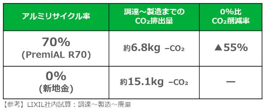 LIXIL has already developed the "PremiAL R70," which has a 70% recycled aluminum usage rate, and the "PremiAL R100," which has a 100% recycled aluminum usage rate.